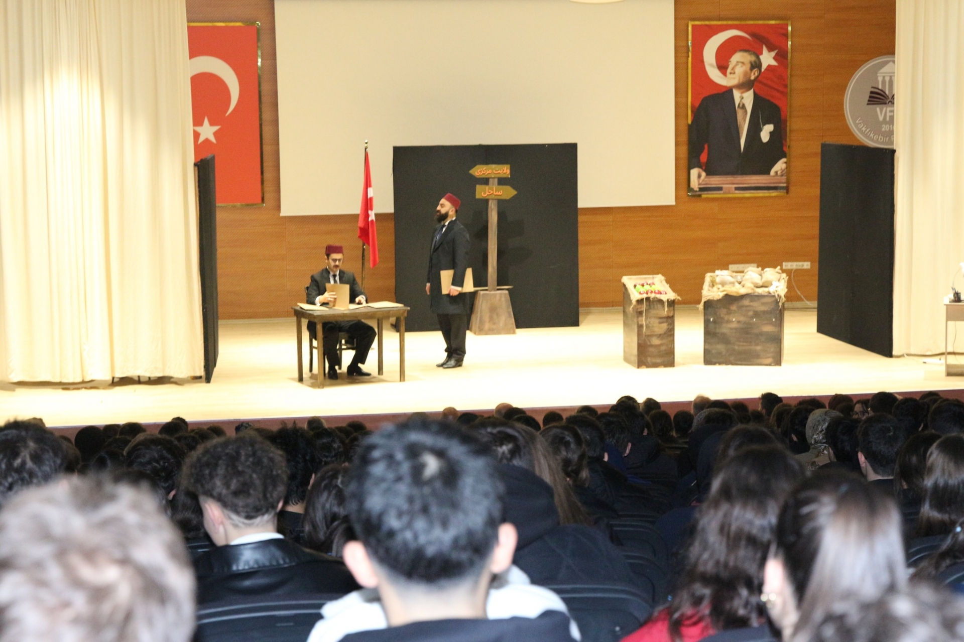 12 Şubat 2026 PerşembeTrabzon Büyükşehir Belediyesi Şehir Tiyatrosu tarafından hazırlanan “Trabzon’un Kayıp Yılları: Muhacirlik (1916–1918)” adlı tiyatro oyunu, Vakfıkebir Fen Lisesi Salonu’nda sahnelendi.